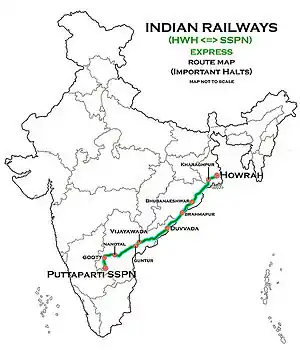 | Termini | Howrah Junction Sathya Sai Prasanthi Nilayam | ||||