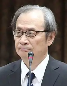 In March 2018, Hsieh announced the imminent restart of the second reactor at Guosheng, which had been closed since May 2016, due to a glitch in its electrical grid.[13] He repeatedly reiterated the government's intent to phase out nuclear power by 2025, as well,[14][13] but was called to devise an updated policy alongside the Ministry of Economic Affairs when a proposal to repeal a related article in the Electricity Act was adopted during the 2018 Taiwanese referendum.[15] In 2019, Hsieh described proposals to activate the Lungmen Nuclear Power Plant as impractical for budgetary and seismological reasons,[16][17] and continued reporting on efforts to send fuel rods meant for the plant back to the United States.[17][18] In 2021, the Japanese government stated that it would begin releasing treated wastewater from the Fukushima Daiichi Nuclear Power Plant into the ocean. Taiwan's representative to Taiwan, Frank Hsieh, faced calls to report to the legislature and be recalled from or resign his post.[19] Following the Japanese announcement, the AEC sent a number of Taiwanese researchers to investigate wastewater discharged from Daiichi.[20] Hsieh Shou-shing planned to send a Taiwanese delegation and government funds to participate in a United Nations mission to review Daiichi wastewater discharge.[21] The AEC also considered starting a fund to compensate Taiwanese fishers affected by contaminated wastewater.[22]