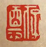 Hu Zhengyan was a noted seal-carver, producing personal seals for numerous dignitaries. His style was rooted in the classical seal script of the Han dynasty, and he followed the Huizhou school of carving founded by his contemporary He Zhen. Hu's calligraphy, although balanced and with a clear compositional structure, is somewhat more angular and rigid than the classical models he followed. Huizhou seals attempt to impart an ancient, weathered impression, although unlike other Huizhou artists Hu did not make a regular practice of artificially aging his seals.[1]