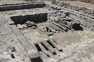 The site topography was the only clue as to location of the structures, since initially there were visible signs of them; mounds could be seen mainly at the top of the hill. Once the first wall was found, it was named Structure A, excavations were extended following in both directions, removing dirt and rubbish.[4]