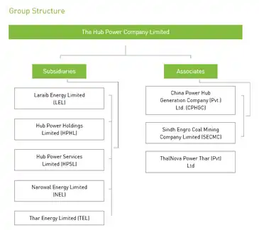 • China Power Hub Generation Company (CPHGC) is the project company for the development, construction and operation of 2×660 MW Coal-fired Power Plant in Hub, Balochistan near the Hub plant. HUBCO has 46% stake in CPHGC[3]