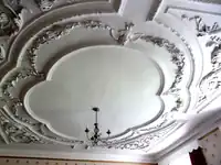 - Stone Bust, Guildhall. A stone bust of him was made in 1910,[46] on the bicentenary of his death, apparently copied from the painting, and was mounted on a plinth on the facade of the South Molton Guildhall, where it survives today. It bears the following inscription: "Hugh Squier AD 1625-1710. Our great benefactor. Erected AD 1910, James Sanders, Mayor". It was possibly erected as a result of the admonition written by the Historian of South Molton J. Cock in his 1893 work Records of ye Antient Borough of South Molton in ye County of Devon,[47] lamenting the 1842 destruction of the Squire family monuments in "The New Chapel", Westminster: