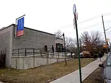 The New York Public Library (NYPL) operates the Huguenot Park branch at 830 Huguenot Avenue, near the intersection with Drumgoole Road East. The branch opened in January 1985, replacing what was once the smallest New York Public Library building just east of the station (still standing). The Huguenot Park branch was possibly named in honor of the nearby Staten Island Railway station's former name.[4]