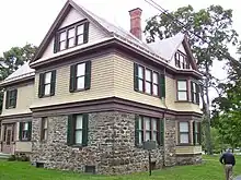 ![]() The Bevier-Elting House, left, and Dubois Fort, location of the Visitor Center at Historic Huguenot Street | |