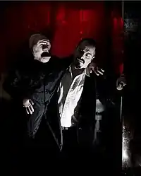 The Hungarian Two-Tailed Dog Party (Hungarian: Magyar Kétfarkú Kutya Párt; MKKP) is a joke political party in Hungary. It was founded in Szeged in 2006, but did not register as an official political party until 2014. The party's main activity is street art, consisting of graffiti, stencils, and posters which parody Hungary's political elite.[2]