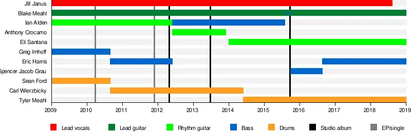 - Eli Santana – rhythm guitar, backing vocals (2014–2018)