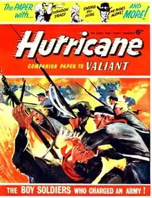 Hurricane was a weekly British comics periodical published by Fleetway Publications from 29 February 1964 to 8 May 1965. The title was billed as "the companion paper to Valiant" in reference to the weekly launched by Fleetway in 1962 that had rapidly become one of the company's best-selling publications. However, while Valiant would run until 1976, Hurricane was less successful and lasted just over a year before being merged with Tiger in 1965.