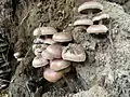 Hypholoma lateritium, sometimes called brick cap, chestnut mushroom,[1] cinnamon cap, brick top, red woodlover or kuritake,[2] is a fungal species in the genus Hypholoma, which also contains the poisonous species Hypholoma fasciculare and the edible Hypholoma capnoides. Its fruiting bodies are generally larger than either of these. Hypholoma sublateritium is a synonym.