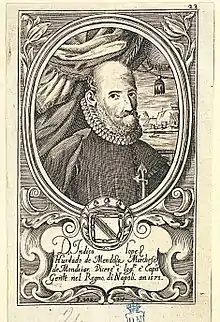 In 1555, he became commander of the Spanish land and sea in the relief of the Turkish siege of Oran and Bugía. In 1560, he was Spanish Ambassador in Rome. He led the Spanish troops during the early stages of the Morisco Revolt together with Luis Fajardo, 2nd Marquis of los Vélez. The American historian Henry Charles Lea wrote of Mondéjar's "short but brilliant campaign... Through heavy snows and intense cold and over almost inaccessible mountains he fought battle after battle, giving the enemy no respite and following up every advantage gained. The Moriscos speedily lost heart and sought terms of surrender… By the middle of February [1569] the rebellion was practically suppressed."[2] Despite these successes, Mondejar was replaced in 1570 by Juan de Austria.[3] After the suppression of the rebellion, he became viceroy of Valencia in 1572, and Viceroy of Naples in 1575.[4]