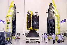 GSAT-6 seen with two halves of payload faring of GSLV-D6