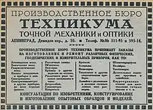 - 1920 - 1930 - Petrograd College for Fine Mechanics and Optics