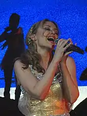 She performed a ballad version, described as orchestral, of the song on her KylieX2008 and was described as a blue train by newspapers. This song was performed as part of all four set orders in the act entitled "Starry Nights" (or "Beach Party" in the case of one leg). She performed the same version on her For You, for Me tour in 2009 in the fifth act, following performances of "White Diamond" and "Confide in Me". Minogue performed the song again in 2011 on her Aphrodite: Les Folies Tour, where there is slight remixing. It was performed in the second act following a performance of "Illusion". She is pulled round the stage on a chariot by her male dancers who are dressed to resemble horses.[40] She most recently performed the song on her Golden Tour, replacing "Breathe".[41]
