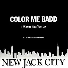 "I Wanna Sex You Up" is a song by American R&B group Color Me Badd, released in March 1991 as the lead single from their debut album, C.M.B. (1991). The song was produced by Dr. Freeze and was also featured on the soundtrack to the 1991 film New Jack City, starring Wesley Snipes, Ice-T, Chris Rock and Judd Nelson. The single achieved commercial success in the United States, spending four weeks at number two on the Billboard Hot 100, and topping both the Billboard Hot R&B Singles chart and the Billboard Hot Dance Singles Sales chart. "I Wanna Sex You Up" also enjoyed international success, peaking atop the charts of New Zealand and the United Kingdom.