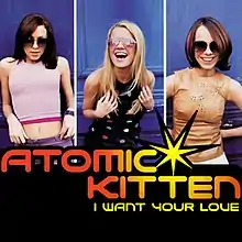 "I Want Your Love" is a song by Atomic Kitten, released as the third single from their debut album, Right Now (2000). The song samples the theme to the 1958 film The Big Country,[2] and it was produced, arranged, recorded, and mixed by Damien Mendis at Metropolis Studios in London.