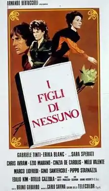 I figli di nessuno (internationally released as Nobody's Children) is an Italian drama film directed by Bruno Gaburro and released in 1974. The film is part of the genre of Italian melodramatic films known as "tearjerker movies" or "lacrima movies".[1][2] It is the remake of Raffaello Matarazzo's I Figli di nessuno.[1]