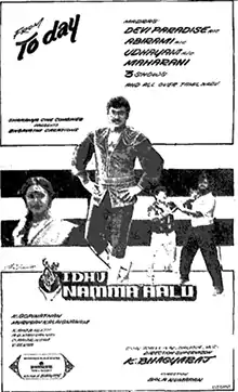 Idhu Namma Aalu (lit. 'He is our man'; contextual: He is from our caste) is a 1988 Indian Tamil-language comedy film written by K. Bhagyaraj and directed by Balakumaran in his debut.[2][3] The film was remade in Telugu as Adirindhi Alludu (1996),[4] and twice in Kannada: as Aliya Alla Magala Ganda (1997) and Ravi Shastri (2006).[5]