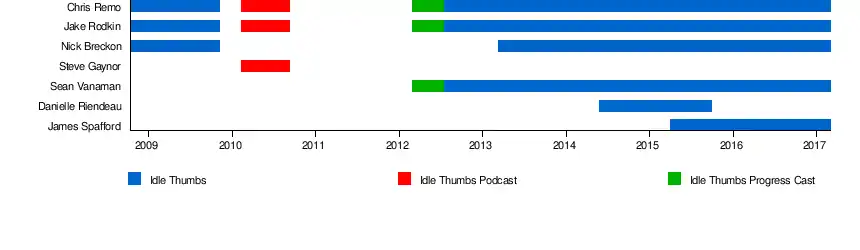 | Idle Thumbs | Chris Remo, Jake Rodkin, Nick Breckon, James Spafford | October 10, 2008 | May 12, 2018 |