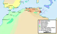 (invasion of the Banu Hilal (1057) — Kairouan destroyed, Zirids reduced to the main coastal cities, rural areas fragments into petty Bedouin emirates)[17]