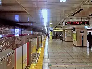 Chest-high platform edge doors are scheduled to be added by the end of fiscal 2020. Platform doors protecting platform 1 are in use since 21 April 2018.[4] It is planned to have platform doors protecting platforms 2 and 3 in operation from 2 March 2019.[5][6]
