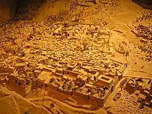 After being displayed in the Ottoman Pavilion at the 1873 Vienna World's Fair, the model was displayed around Europe and was purchased in 1878 by community leaders in Geneva, where it was displayed in the Calvinium (the Salle de la Réformation) for 40 years.[5] In 1920 the building in which the model was housed was leased by the League of Nations. The model was moved and soon forgotten.[6] In 1985, then graduate student Moti Yair of the Hebrew University came across a reference to it and tried to track down its location. With the help of some friends and a librarian from the Library of Geneva, the model was found in the library's attic.[6] Shortly afterwards the model was offered to Jerusalem on permanent loan,[6] and it is on exhibition at the Tower of David Museum in Jerusalem.[5]