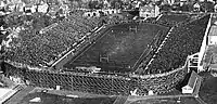 On October 24, 1925, Michigan defeated Illinois, 3–0, in Champaign. The victory came as Illinois celebrated homecoming in front of a record crowd of 67,000 at Memorial Stadium. Stopping Red Grange was considered to be the key to beating Illinois in 1925.[23] During the pre-season practice sessions, Michigan's line coach Tad Wieman dressed a player in a sweater with Grange's number and sent his guards and tackles "after the mythical Grange with instructions to 'hit him hard.'"[24] Before the game, Michigan coach Fielding H. Yost told reporters: "One of the greatest throngs in all football history is here. For weeks the game has been on every tongue. . . . Our players have been compared as to weight, speed, and ability. The stage is set."[25]