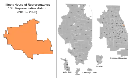 - "STATE LEGISLATIVE DISTRICT REFERENCE MAP (2022): Illinois - State House District 13" (PDF). United States Census Bureau. October 12, 2022. Retrieved February 6, 2023.