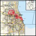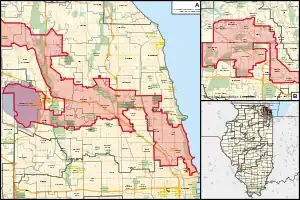 Outside of the Chicago city limits, this district takes in the Cook County municipalities of Inverness; most of Arlington Heights and Barrington Hills; half of Des Plaines, Palatine, and Mount Prospect.