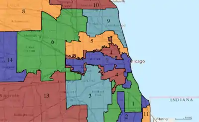 Table of United States congressional district boundary maps in the State of Illinois, presented chronologically.[4] All redistricting events that took place in Illinois between 1973 and 2013 are shown.