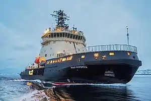 In March 2014, the Ministry of Defence of the Russian Federation announced that the Russian Navy would receive a new auxiliary icebreaker as part of the ongoing fleet renewal program.[6] The vessel, designed by the Russian Vympel Design Bureau as Project 21180,[7] would be the first new military icebreaker built in Russia since the Soviet era.[8]