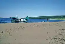 Imuruk Lake (Inupiaq: Imaġruk or Narvaġruk) is the largest body of fresh water in Seward Peninsula in the U.S. state of Alaska. It measures 31 square miles (80 km2) and has a drainage basin of 102 square miles (260 km2), It lies on top of a lava plateau at an elevation of 960 feet (290 m). The drainage basin is relatively flat, as the maximum elevation is only about 1,600 feet (490 m). A low gap in the divide between the lake and the head of the right fork of Goodhope River rises only a few feet above the lake. The Fairhaven Ditch takes practically all its water from the lake.[1] Serpentine Hot Springs flow to the Serpentine River, 47 miles (76 km) northwest of Imuruk Lake.[2]