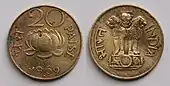 coin is a former denomination of the Indian rupee. The 20 Paise coin equals 1⁄5 of a rupee.[1]