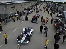- Carb Day: The final practice session before the race, currently held on the Friday before race day, is called "Carburetion Day" (shortened to "Carb Day" since 2000). The name originally came from the fact that it was the final session where teams could tune their carburetors in conditions similar to those that might be encountered on race day. The name has remained despite the fact that no qualified car has used a carburetor since 1963.[6] The day is now similar to most motorsport weekends, as the final practice is accompanied by a pit stop contest, a support race, and a concert.[7] The Pit Stop Challenge debuted in 1977, the Indy Lights Freedom 100 moved to Carb Day in 2005, and the concerts have been held since 1998. In 1969–1972, Carb Day was held the Wednesday before the race. From 1973 to 2004, Carb Day was held the Thursday before the race. It was moved to Friday before the race beginning in 2005, at which time the Indy Lights race was moved to that day. Prior to 1969, Carb Day was not on a fixed day of the week, instead it was simply scheduled for a nondescript day midway between the final day of time trials and race day, and was sometimes closed to the public. Particularly with the advent of the sometimes aggressive Post-Qualifying Monday practice, the Carb Day practice session is typically disciplined and relatively tame. The objectives of the teams might be to conduct basic leak-checks, and/or other minute, last-minute adjustments, but refraining from aggressive driving and avoiding incidents. In case of inclement weather, the Carb Day practice is usually cancelled without being rescheduled.