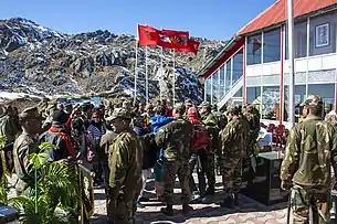 Himveer Wives' Welfare Association is a welfare wing of the Indo-Tibetan Border Police (ITBP).[13] It is a non-profit organisation that works for welfare of spouses, children or any dependents of ITBP personnel.[14] It is registered under the Societies Registration Act, 1860. The association aims to rehabilitate battle casualties and widows of those who are killed in action in the line of duty. Other than that, the association organises vocational training and empowers the beneficiaries. There are more than 88,000 members in the association. The association also works for the welfare of local population in the remote Himalayan region.[15] The formal registration of the family welfare organization of ITBP named "Himveer Wives' Welfare Association" was done on 19 May, 1998 in New Delhi. Its motto is ‘Development through active involvement’. It organises annual exhibitions to showcase rare products of Himalayan region, the profit of which is used for welfare of the families of ITBP.[16][17] It also honors Veer Naris (War Widows) on special occasions and provides them assistance when needed.[18] It organises its Raising Day every year and announces various welfare programmes for its members as well as conducts training programs. [19][20]