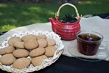 Ingefærnøtter, or ginger nuts, are a Norwegian cookie known for their spiced taste, utilizing ginger, cinnamon, nutmeg, cardamom, and black pepper in their recipes.[1] They are frequently baked during Christmastime in regions throughout Norway as one of the syv slag, or "seven kinds (of christmas cookies)", served.[2]