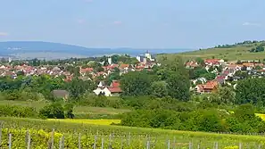 The constituent communities of Ingelheim-Mitte and Ingelheim-Süd ("Middle" and "South") are nestled against the corner of the so-called Mainzer Berg ("Mainz Mountain").