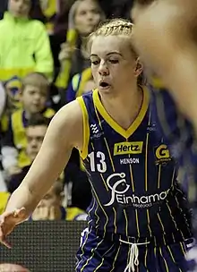 On 25 November 2009, she tore her anterior cruciate ligament in a game against Haukar in the Úrvalsdeild and missed the rest of the season.[6][7][8] After recovering, she joined Keflavík prior to the 2010-2011 season and helped the club win both the national championship[9][10] and the Icelandic Cup, where she was a key player down the stretch in Keflavík's 62-72 victory.[11]