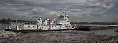M/V Bill Berry of the Ingram Barge Company pushing cargo barges up the Mississippi River at Dubuque, Iowa