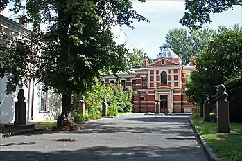 The Institute of Experimental Education in St Petersburg is one of the oldest scientific establishments in Russia.[1] It was founded by Alexander of Oldenburg in 1888 along the lines of Louis Pasteur's Pasteur Institute. It was here that Pavlov did much of his groundbreaking physiological research.[1] The portal of the library is decorated with tiles created by Peter Vaulin between 1911 and 1913.[2]