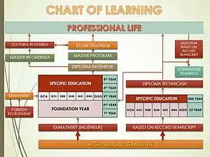 The Institute of Technology of Cambodia (ITC) is one of Cambodia's higher education institutions.[2] It offers education and research programs in engineering. Programs are offered in French and English.