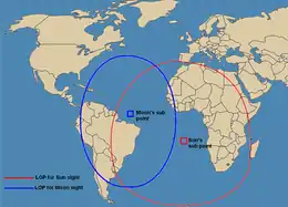- celestial observation (a short segment of the circle of equal altitude, but generally represented as a line),
