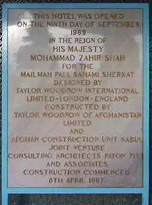 The Intercontinental Hotel Kabul[1] is a five star[2] hotel located in the Karte Parwan neighbourhood in western Kabul, Afghanistan. It served as the nation's first international luxury hotel, one of the most visited by foreigners since its opening in 1969, built nearby the Bagh-e Bala Palace. The hotel has 200 rooms and is equipped with a swimming pool, a gym, and about four restaurants for dine in or room service.