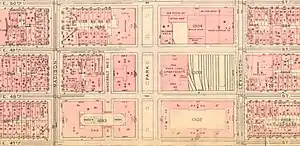 By the mid-1920s, the parcel on the west side of Lexington Avenue between 48th and 49th Streets was one of the last remaining vacant parcels in Terminal City.[55] The New York State Realty and Terminal Company, a division of the New York Central Railroad, leased this parcel in January 1925 to a syndicate headed by architect Eliot Cross and businessman William Seward Webb Jr.[6][7] The syndicate, known as the Barclay Park Corporation,[3] planned to construct a 600-unit apartment house above the railroad tracks there, with one to three rooms per unit.[6][7] By that June, Cross and Cross had drawn up plans for a 14-story hotel on the site, to be known as the Barclay,[56] and had hired Todd Richardson Todd as the general contractor.[57][55] The firm filed plans for the hotel the next month.[58][59] The Vanderbilt family provided funding for the hotel's construction.[60]