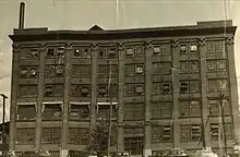 In 1917, the original International Hat headquarters was located at 711 Lucas Avenue.[6] From 1917 to 1928, the factory manufactured straw harvest hats.[6] By the 1920s, the company was the largest manufacturer of harvest hats in the world from this facility.[6] In 1928, the company purchased 2528 Texas Avenue from Koken Barbers' Supply Company and sold the original factory at 711 Lucas to Koken as part of the deal.[6] The Texas location would continue manufacturing straw harvest hats, as well as all military sun helmets produced during and after World War II.[3] This five-story building included 87,000 square feet, or approximately two acres.[64][65] In 2016, this facility was purchased by two non-profit organizations, DeSales Community Development and St. Louis Makes to form a new joint private non-profit organization called Brick City Makes.[66][67] The Brick City Makes hub is noted as being the first non-profit organization in the United States to renovate an industrial building in order to provide rent space and development, as a business incubator, for entrepreneurial manufacturers.[65][66] The Brick City Makes business incubator, at the former International Hat factory, is the first model in the US to focus on business support services that grow the expertise and profitability of manufacturers and inventors until their organizations are large enough to exit the incubator and launch independently elsewhere.[66][68]