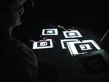 HAL 9000 is an interactive installation in which four different atmospheres are created by certain images and sounds that inhabit it. This proposal works with a technology called augmented reality which is a representation model for the handling, integration and interaction of images, which merges the everyday reality with virtual reality. By allowing interaction markers and total control of the projections and sounds by those who are there.[2]