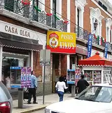 The 3-day International Pasty Festival was launched in Real del Monte in October 2009.[3] María Oralia Vega Ortíz, Hidalgo tourism secretary, opened the festival. Richard Williams, president of the Sociedad Cornish Mexicana, was among those present. Thirteen paste companies participated.[4] Commercial stalls sold the savoury snacks on the main streets of the town. Fillings included tongue, brain, sausage, beans and yellow cheese.[5] There were teething troubles, as when customs officials confiscated swedes that were being imported as an essential ingredient for authentic pasties.[6]
