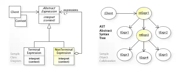 Expressionclass hierarchy and implementing aninterpret()operation. - Represent a sentence in the language by an abstract syntax tree (AST) made up of