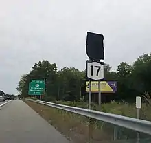 Work on converting the portion of the highway east of Windsor is expected to be far more substantial than the work west of Binghamton.[49] Aside from numerous minor interchange improvements, major work includes constructing two new interchanges in the mountainous Hale Eddy area, exits 85 and 86, to replace two at-grade intersections, as well as the relocation of driveways in that area, improving curve radiuses throughout the route, and widening the shoulders on narrow parts of the highway. Work was completed in November 2019 on a redesigned interchange at exit 131, where NY 17 meets I-87 and NY 32.[52] Construction to bring exits 124 and 125 in Goshen up to Interstate standards, with the latter being a brand new exit, which was expected to be completed in early 2020, but was delayed.[53] In December 2020, NYSDOT completed construction of the new exit 125, which was built to accommodate the new Legoland New York. As part of the project, a four-ramp parclo was built, which replaced the prior exit 125, located 4,000 feet (1.2 km) west. NY 17 was also expanded to three lanes in each direction between exits 124 and 125. Harriman Drive was expanded to two lanes in each direction between the exit and Legoland's entrance as well.[54][55] Exit 122 has also been upgraded to interstate standards.[56] There is no timetable for the full completion of the I-86 conversion between NY 79 in Windsor and the thruway (I-87) in Harriman. Nevertheless, the segment between Bloomingburg and Goshen is signed as I-86 and NY 17 despite not officially being part of I-86.