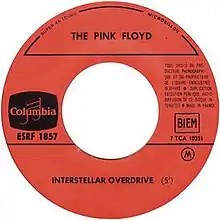 B-side label of the French Arnold Layne EP, featuring an edit of "Interstellar Overdrive"