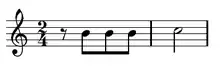 {\set Staff.midiInstrument = #"trombone" \key g \minor \time 2/4 \skip4 \skip8. d''16 d''4 d''8. es''16 d''4 c''8. a'16 bes'2 g'2}