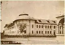 For some years, the citizens of Caracal had demanded a gymnasium in their town, and, with the approval of Education Minister Titu Maiorescu, one opened in the autumn of 1888. It was dedicated to Ivan Asen I of Bulgaria. A library was opened in 1889 and in 1902 named for Nică Barbu Locusteanu, who had made a substantial donation. In its early years, the school functioned in a private home. The first dedicated building was erected between 1891 and 1893, on expropriated and compensated land near the town park. Due to the marshy soil, it was built on a raised foundation; the cost came to 150,000 lei, supplied by the national government and by Romanați County.[1]